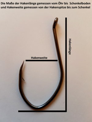 Die Maße der Hakengröße gemessen vom Öhr bis zum Schenkelboden 6,3cm
